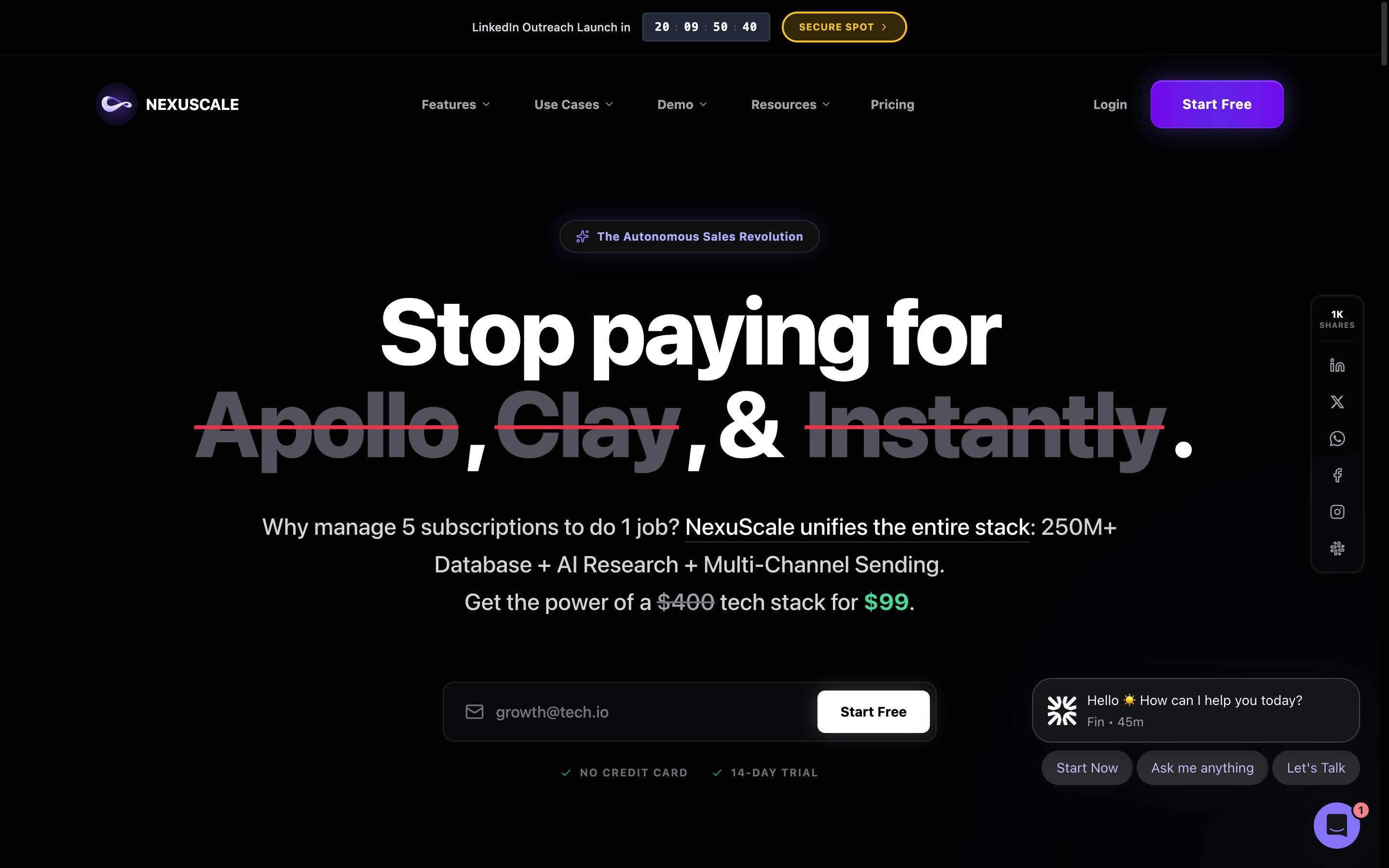 • 1. Built nexuscale.ai from the ground up and successfully launched on AppSumo, gaining over 1,400 customers and transforming how sales teams approach outbound campaigns.